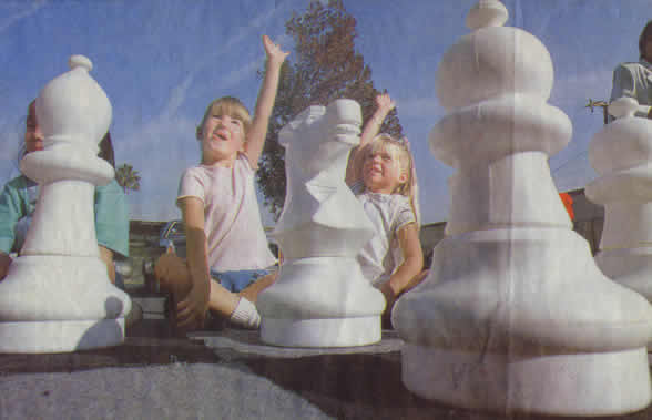 On a recent day at Valencia, more than 20 chess boards are spread on the asphalt near the handball backboards. Red playground balls careen into the boards almost as often as first-graders yell "Check!"