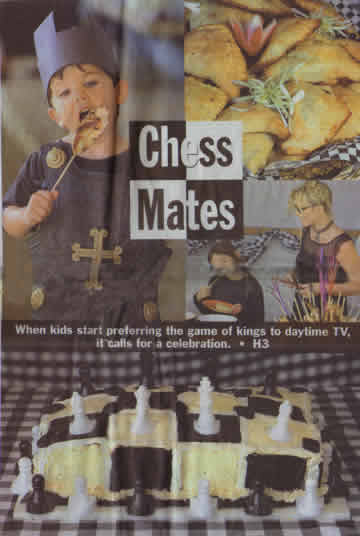 Our opening move in the menu. Malibu moms Annie Donnellan and Gabrielle Harris have just launched Indigo Cafe at Kanan Road and Pacific Coast Highway, and the chef there, Trudi Reynolds, has three kids and gets the concept. They will take care of a big portion of the feast, and we gather an army of possibilities, prepared to surrender pieces along the way. The Queen's Pawn Salad is banished from the buffet. A Marshmallow Moat sinks before the drawbridge. Ditto the Gingerbread Castle. Bishop's Havens begin as stuffed pita pockets and become turnover hats.